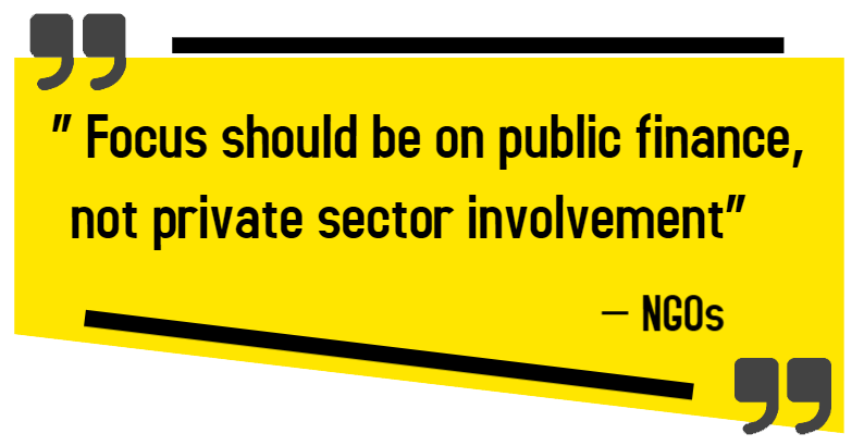 ‘Focus should be on public finance, not private sector involvement’ - NGOs